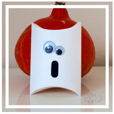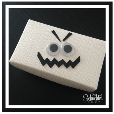 Die Wackelaugen in unterschiedlichen Größen geben dieser Halloween Geschenkschachtel